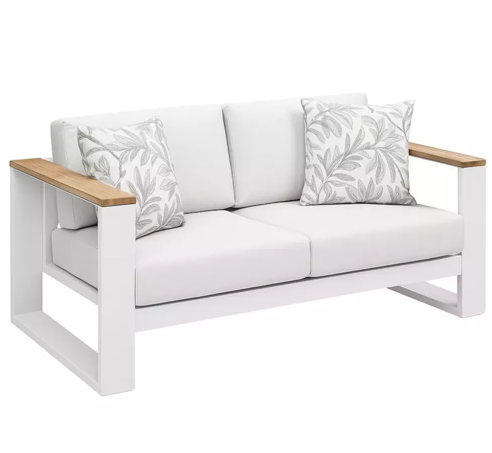 Coloris : Aluminium : Blanc / Coussins : Gris / Bois : Teck