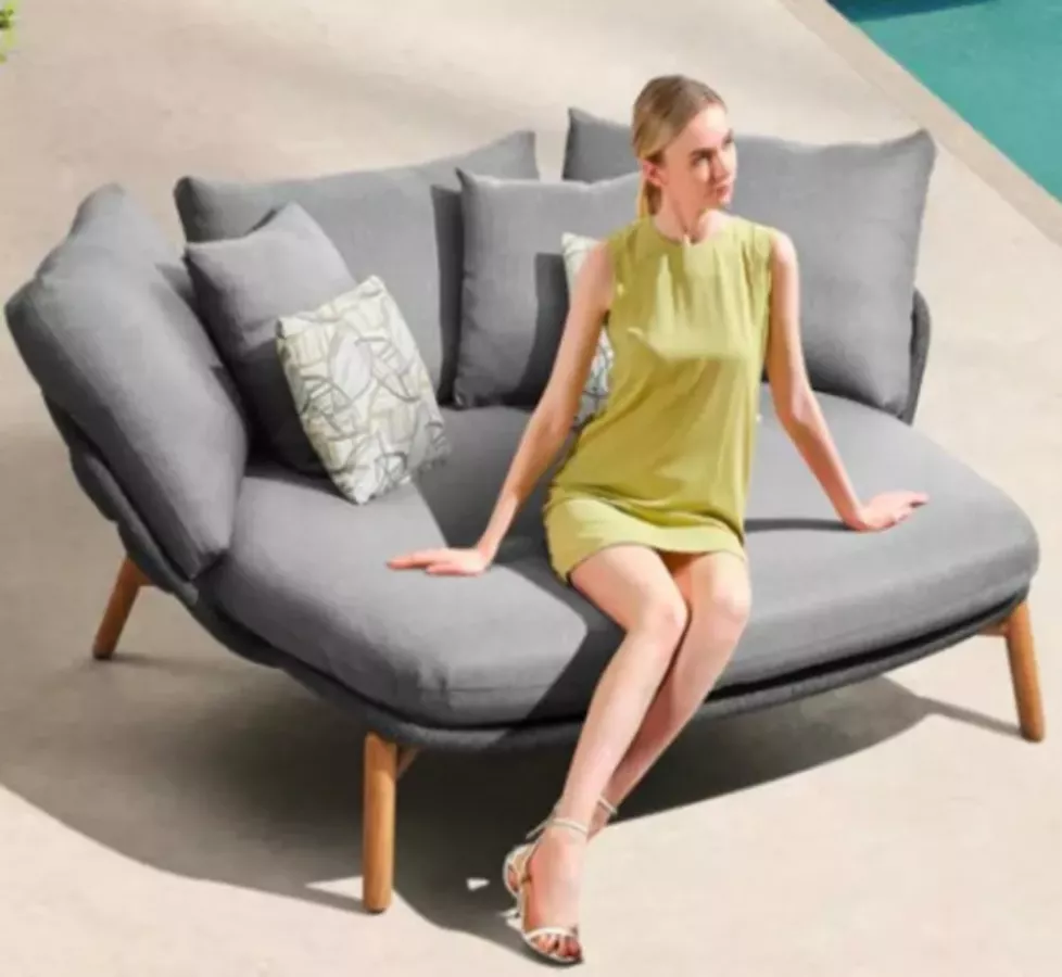 Imaginé par Claudio Bellini, le Daybed VASCA allie élégance méditerranéenne et douceur tropicale. Sa forme arrondie, son dossier en cordage tressé et ses coussins gris en tissu Oléfin en font un véritable lit de jour lounge, pensé pour une ou deux personnes, parfait pour la sieste, la lecture ou la contemplation.