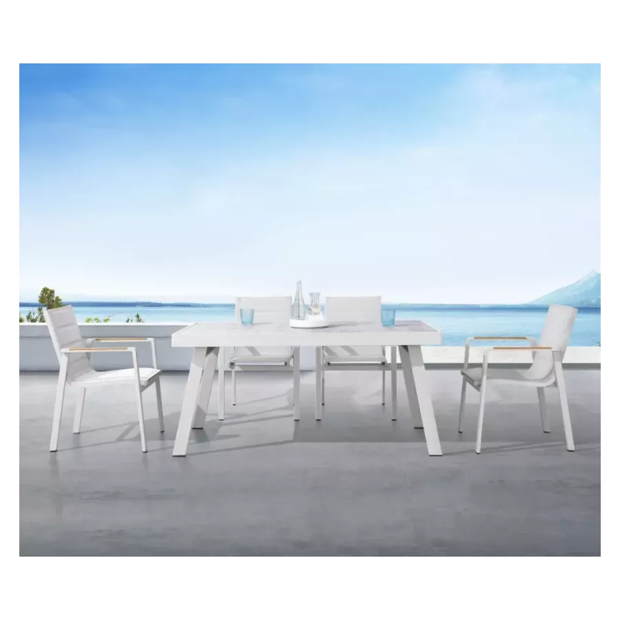 ENSEMBLE TABLE CERAMIQUE & 6 CHAISES ALU/TECK DESIGN - NOFI 2.0