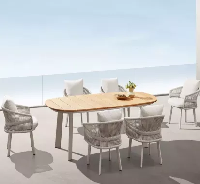 Conçu par le designer italien Claudio Bellini, cet ensemble associe lignes architecturales, légèreté visuelle et finitions haut de gamme, dans un esprit à la fois moderne, convivial et intemporel. Idéal pour les terrasses de villas, jardins paysagers, espaces piscine ou pièces de vie ouvertes sur l’extérieur, il s’intègre naturellement dans les environnements les plus raffinés.