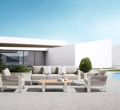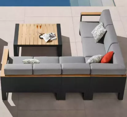 Le salon d’angle 5 places WING – Pininfarina incarne l’excellence du mobilier extérieur haut de gamme sur en Provence Alpes Côte d’Azur. Conçu en aluminium thermolaqué et teck massif, il associe design iconique et durabilité exceptionnelle. Ses lignes sculpturales, inspirées de l’univers automobile, offrent une esthétique unique et contemporaine.