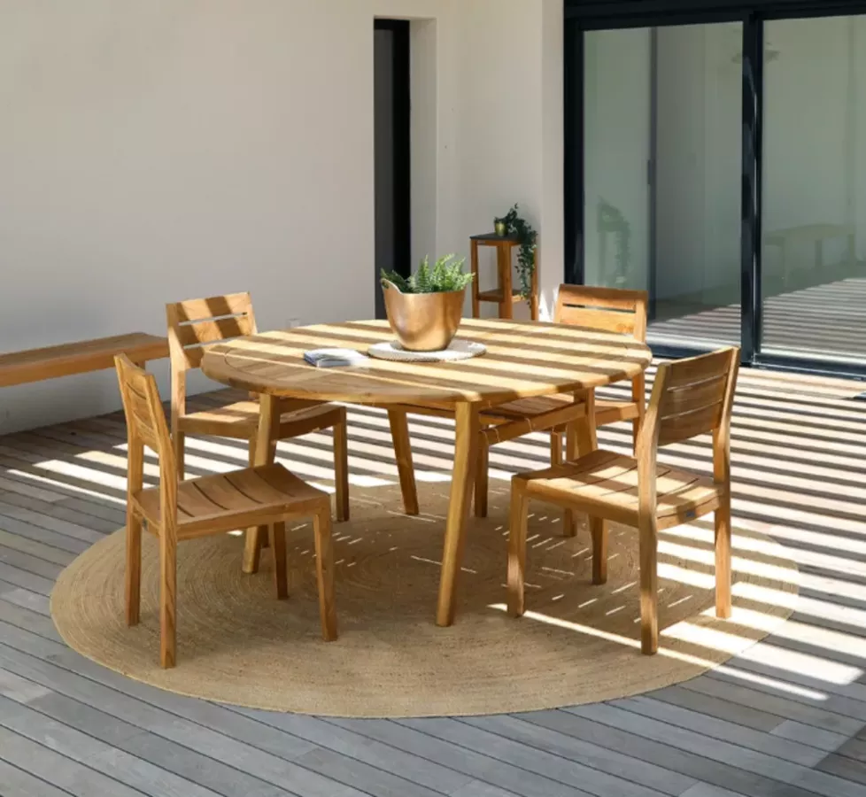 • Le teck est naturellement imprégné d’huiles qui lui confèrent une excellente durabilité, évitant ainsi les fissures et les moisissures.