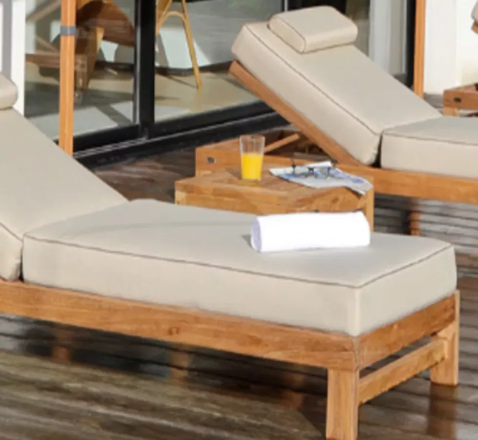 Grâce à un ponçage ultra-fin, sa surface est douce au toucher, révélant les nuances chaudes du teck brut et ses veinures caractéristiques. Avec les saisons, il développe une patine grisée subtile, qui accentue encore son élégance. Pour préserver sa teinte dorée, un entretien léger avec saturateur est suffisant.