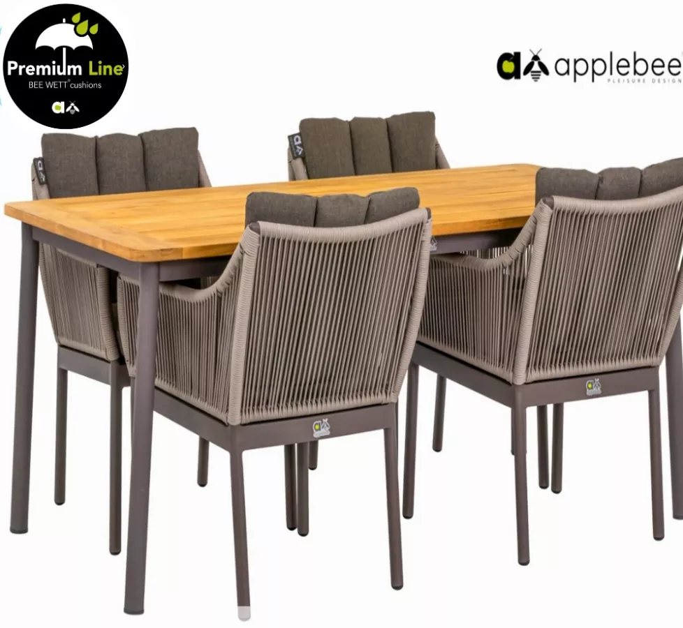 Table à manger BIJOU – Apple Bee, teck massif et piètement aluminium Côte d’Azur
